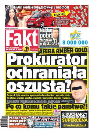 Czy Majdan pobił chłopaka w dyskotece – piłkarza zatrzymała policja a 21-latek twierdzi, że Majdan podbił mu oko; Barbara K. była niezwykle wyrozumiała dla Amber Gold i jego założyciela, nie chciała wszcząć śledztwa, zwlekała z powołaniem biegłego rewidenta; Robert G. próbował zgwałcić 12-latkę a potem utopił w stawie; jak będzie się bronić matka Madzi; Anna Mucha chce kupić mieszkanie za milion.
