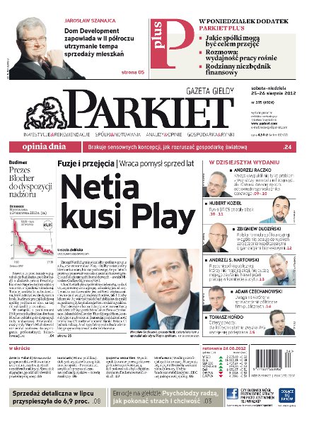 Gazeta Giełdy i Inwestorów Parkiet przyspiesza publikację e-wydania. Od poniedziałku, już od godz. 20.00, można kupić i przeczytać e-wydanie Parkietu, które w wersji papierowej ukaże się dopiero następnego dnia. Parkiet jest więc najświeższą gazetą finansową w Polsce.