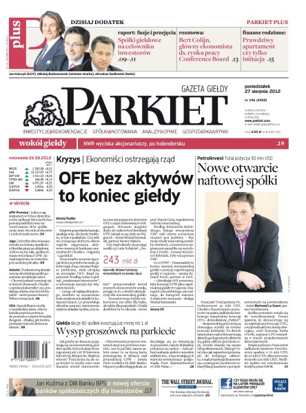 Ekonomiści ostrzegają rząd – OFE bez aktywów to koniec giełdy; Petrolinvest Total pożycza 30 mln USD – nowe otwarcie naftowej spółki; akcje 82 spółek kosztują już mniej niż 1 zł – wysyp groszówek na parkiecie; prawdziwy apartament czy tylko imitacja; Bert Colijn, główny ekonomista ds. rynku pracy Conference Board.