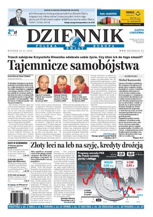 Trzech zabójców Krzysztofa Olewnika popełniło samobójstwo - czy ktoś ich do tego zmusił; dziś odbędzie się konferencja prasowa z udziałem polskich marynarzy porwanych przez somalijskich piratów; w 2008 roku Polacy wydali na hazard więcej niż na alkohol; zaprzysiężenie 44. prezydenta USA będzie transmitowane na żywo przez polskie stacje telewizyjne; dlaczego internet stał się formą popularnych w czasach PRL książek skarg i zażaleń; marginalizacja prezydenta Ukrainy otwiera Julii Tymoszenko drogę do sukcesu w wyborach prezydenckich.