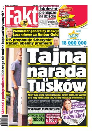 Prokurator generalny w akcji – lecą głowy za Amber Gold; młody Tusk prosto z urlopu przyjechał do taty – czy radzili, jak wywinąć się z afery wokół Amber Gold, w który uwikłał się premierowicz; Aleksandra Kwaśniewska, córka byłego prezydenta już od wielu lat prowadzi podwójne życie; Smuda szuka roboty – czy Śląsk Wrocław zatrudni nieudacznika; Czubaszek wydaje na papierosy 13 tysięcy złotych.