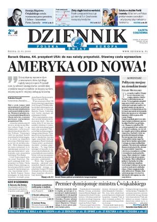 Barack Obama, 44. prezydent USA został oficjalnie zaprzysiężony; Donald Tusk niespodziewanie przyjął wczoraj dymisję ministra sprawiedliwości Zbigniewa Ćwiąkalskiego; Ministerstwo Finansów chce uprościć reguły składania zeznań podatkowych za rok 2008; czy reklamy piwa w telewizji będą emitowane tylko po godzinie 23; polscy marynarze, uwolnieni z rąk somalijskich piratów wrócą do kraju za tydzień; wciąż nie wiadomo ile Ukraina będzie płaciła Rosji za gaz; naukowcy skonstruowali urządzenie, które dotrze do najdalszych zakamarków naszego ciała.