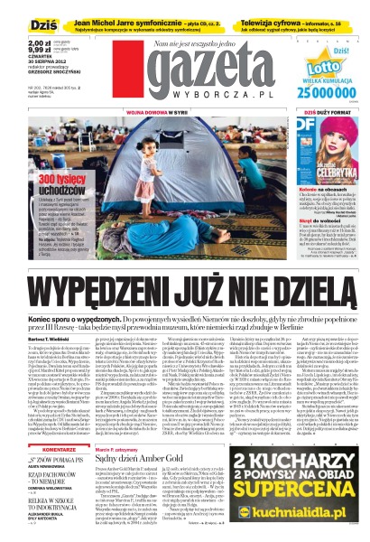 Do powojennych wysiedleń Niemców nie doszłoby, gdyby nie zbrodnie popełnione przez III Rzeszę – taka będzie myśl przewodnia muzeum, które niemiecki rząd zbuduje w Berlinie; 300 tysięcy uchodźców – ciekają z Syrii przed bombami i masowymi egzekucjami przeprowadzanymi na ulicach przez wojska wierne Asadowi; telewizja cyfrowa – jak odbierać sygnał cyfrowy, jakie będą korzyści; prezes Amber Gold Marcin P. Usłyszał najważniejszy w całej aferze zarzut – oszustwa wielkich rozmiarów – i może zostać aresztowany; na obozy dla przyszłych celebrytek jeżdżą już siedmiolatki.
