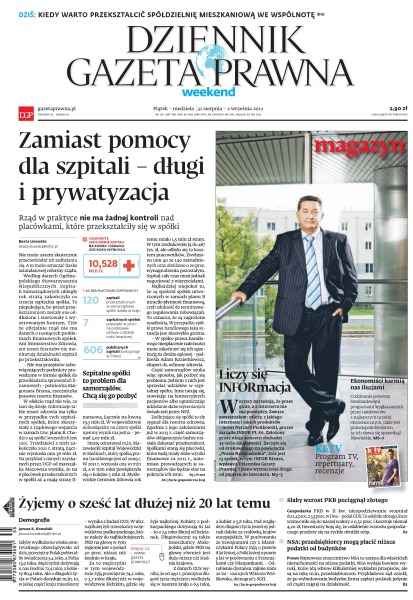Zamiast pomocy dla szpitali długi i prywatyzacja – rząd w praktyce nie ma żadnej kontroli nad placówkami, które przekształciły się w spółki; żyjemy o sześć lat dłużej niż 20 lat temu; słaby wzrost PKB pociągnął złotego; NSA: przedsiębiorcy mogą płacić niższe podatki od budynków; ekonomiści karmią nas iluzjami; kiedy warto przekształcić spółdzielnie mieszkaniową we wspólnotę.