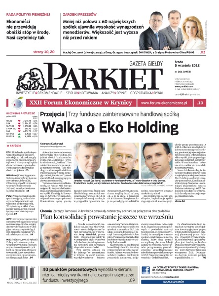 wynagrodzeń kadry kierowniczej – mimo dekoniunktury, większość kwot jest wyższa niż przed rokiem; trzy fundusze biją się o Eko Holding; kłopotliwy skup EFH zapewne trafi do sądu; negocjacje 700–900 mln zł pożyczki zarząd NFI Midas