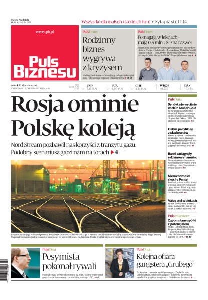 Według Credit Suisse rodzinne firmy radzą sobie lepiej niż inne; brainly.com, edukacyjny serwis społecznościowy, ma użytkowników w 17 krajach; Nord Stream pozbawił nas korzyści z tranzytu gazu – podobny scenariusz grozi nam na torach; dlaczego syndyk nie wyciśnie wiele z Amber Gold; resort finansów i służba celna zwalniają z pracy działaczy, którzy głośno krytykowali własne instytucje; fundusz private equity, znany w Polsce z inwestycji w medycynę, handel detaliczny, usługi i spożywkę, przymierza się do deweloperki; Midas, Getin Holding, Kruk, Emperia, Bogdanka i Robyg – akcje tych spółek to najbardziej niedowartościowane papiery na GPW.