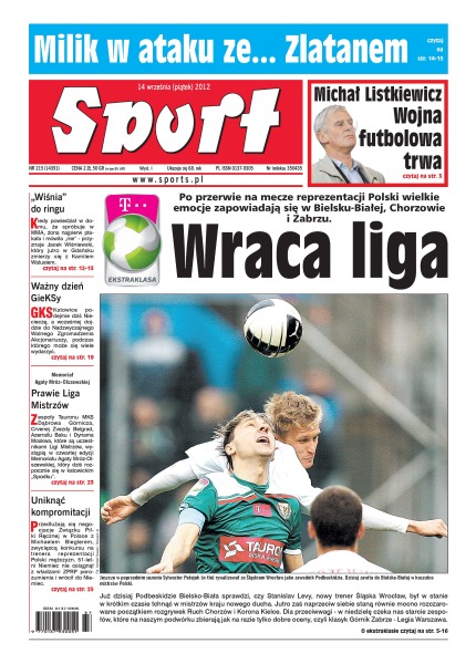 Po przerwie na mecze reprezentacji Polski wielkie emocje zapowiadają się w Bielsku-Białej, Chorzowie i Zabrzu; o funkcję prezesa PZPN będzie się ubiegać maksymalnie czterech kandydatów: Grzegorz Lato, Zbigniew Boniek, Roman Kosecki i Stefan Antkowiak – uważa członek obecnego zarządu związku Jacek Masiota; nowy trener drużyny mistrzów Polski nie ma za sobą kilkuletniej pracy w jednym klubie – jest człowiekiem z zasadami, a takich nie wszędzie się lubi; przedłużają się negocjacje Związku Piłki Ręcznej w Polsce z Michaelem Bieglerem, zwycięzcą konkursu na trenera reprezentacji Polski mężczyzn; dziś Polacy grają w Łodzi z Białorusią – jego stawką będzie awans do Grupy I Strefy Euro-Afrykańskiej Pucharu Davisa.