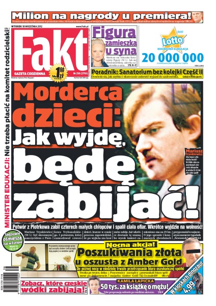 Premier straszy nas kryzysem w przyszłym roku, ale kadrze kierowniczej w swojej kancelarii Donald Tusk już zapisał milion złotych w budżecie na nagrody; skończy się tułaczka Katarzyny Figury – aktorka zamieszka u syna; dowiedz się, jak szybko i skutecznie załatwić wyjazd do uzdrowiska; potwór z Piotrkowa zabił czterech małych chłopców i spalił ciała ofiar – wkrótce wyjdzie na wolność; zobacz, które czeskie wódki zabijają.