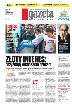 Spór z Japonią o bezludne wyspy na Morzu Wschodniochińskim rozpalił emocje w Chinach; majątek Amber Gold jest wart więcej, niż do tej pory przypuszczano – aż 100 mln zł, ale klienci mają szansę odzyskać tylko kilkanaście procent kwot powierzonych spółce; w całym kraju Poczta Polska przesyła upomnienia osobom, które mają zarejestrowany odbiornik, anie płacą abonamentu radiowo-telewizyjnego; Komisja Europejska odmrozi środki na polską e-administrację; co zdrożeje, co stanieje – czy za żywność zapłacimy więcej.