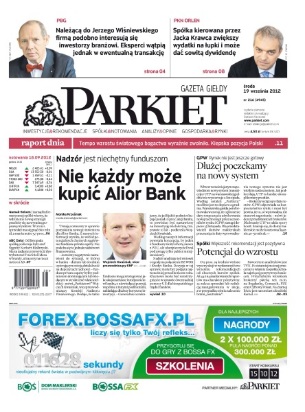 PBG – należącą do Jerzego Wiśniewskiego firmą podobno interesują się inwestorzy branżowi; PKN Orlen – spółka kierowana przez Jacka Krawca zwiększy wydatki na łupki i może dać sowitą dywidendę; dlaczego nie każdy może kupić Alior Bank; o 9 proc. są średnio wyższe wyceny akcji w wydawanych we wrześniu rekomendacjach od obecnych kursów spółek; tempo wzrostu światowego bogactwa wyraźnie zwolniło – kiepska pozycja Polski.