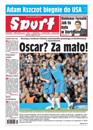 Broniąca trofeum Chempions League Chelsea roztrwoniła przewagę w konfrontacji z Juventusem i musiała pogodzić się z remisem; Adam Kszczot biegnie do USA; Waldemar Fornalik – jak to było w Dortmundzie; po Lidze Mistrzów rozpoczyna rozgrywki grupowe Liga Europy, tytułu broni Atletico Madryt; minister sportu, Joanna Mucha, podpisała rozporządzenie zrównujące nagrody dla medalistów igrzysk i paraolimpiad.
