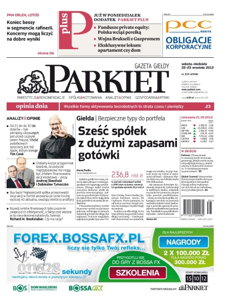 Największy w Polsce newsroom gospodarczy zbiera, analizuje i zgłębia dla Państwa najważniejsze informacje ze świata finansów. Codzienne wydanie „Parkietu”, sześć dni w tygodniu, to kilkadziesiąt artykułów o emitentach, instytucjach finansowych, gospodarce. To również opinie, felietony i wywiady z najważniejszymi ludźmi krajowej i globalnej finansjery.