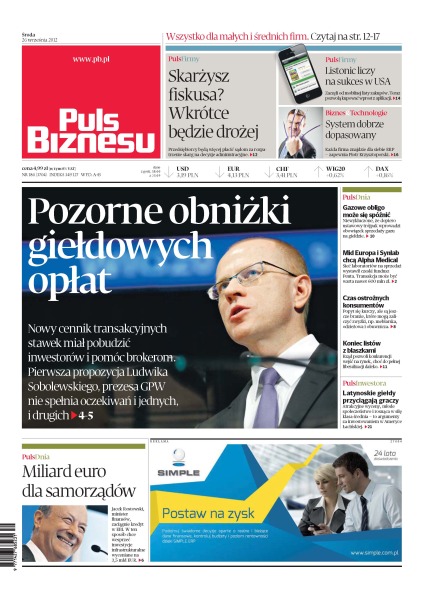 Przedsiębiorcy będą więcej płacić sądom za rozpatrzenie skarg na decyzje administracyjne; Listonic – zaczął od mobilnej listy zakupów, a teraz pozwoli kupować wprost z aplikacji; nowy cennik transakcyjnych stawek miał pobudzić inwestorów i pomóc brokerom – pierwsza propozycja Ludwika Sobolewskiego, prezesa GPW nie spełnia oczekiwań i jednych, i drugich; niewykluczone, że dopiero ustawowy trójpak wprowadzi obowiązek sprzedaży gazu na giełdzie; sieć laboratoriów na sprzedaż wystawił czeski fundusz Penta – transakcja może być warta nawet 600 mln zł; popyt się kurczy, ale są jeszcze branże, które mogą zaliczyć zwyżki, np. meblarska, odzieżowa i obuwnicza; rząd pozwoli konkurencji wejść na rynek, choć do pełnej liberalizacji daleko.