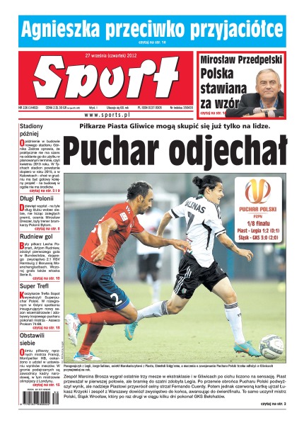 Piłkarze Piasta Gliwice mogą skupić się już tylko na lidze; opóźnienie w budowie nowego stadionu Górnika Zabrze sprawia, że praktycznie nie ma szans na oddanie go do użytku w planowanym terminie; dziewięć wypłat - na tyle dług klubu wobec siebie ocenia Mirosław Dreszer, były trener bram-karzy Polonii Bytom; koszykarze Trefla Sopot wywalczyli Superpuchar Polski; ośmiu piłkarzy ręcznych mistrza Francji, Montpellier HB, oskarżono o udział w ustawianiu wyników meczów.