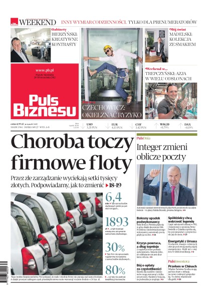 Choroba toczy firmowe floty – przez złe zarządzanie wyciekają setki tysięcy złotych – zobacz, jak to zmienić; mała firma z Płońska pięła się w górę dzięki zleceniom DSS; część założycieli znanej w PRL i kojarzonej z opozycją firmy Świetlik z Gdańska spotka się, by porozmawiać o przywróceniu jej do życia; władze Państwa Środka mogą już bez obaw o inflację na nowo rozkręcić gospodarkę; stawki dla mediów i telekomów mogą wzrosnąć o kilkaset procent, nadawcy boją się, że podwyżka je zrujnuje.