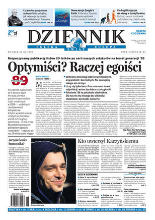 Jakie jest pokolenie '89? Młodzi ludzie komentują poświęconą im serię artykułów Dziennika; Jarosław Kaczyński na kongresie PiS przepraszał inteligencję i apelował o pokojowy charakter debaty publicznej; idol wielkopolskich kibiców jest podejrzewany o ustawianie meczów Lecha Poznań; trudne początki Czechów na czele Wspólnoty; rząd w Berlinie otworzy rynek pracy dwa lata później niż zapowiadał; czy jesteśmy przygotowani na kryzys - rozmowa z prof. Czapińskim.