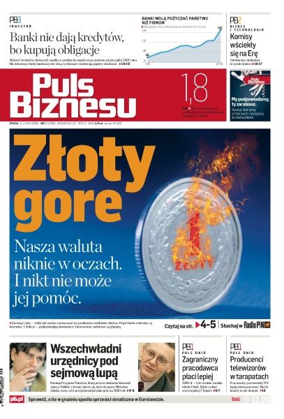 Dramat złotówki: frank kosztuje 3,10 zł, euro 4,60 zł, banki rzuciły się na obligacje, indeksy giełdowe przebiły dno, puls płac – wynagrodzenie w firmach polskich i zagranicznych, Mirosław Sekuła przejął przewodnictwo komisji Przyjazne Państwo, zagrożony jest los 16 tys. miejsc pracy w branży elektronicznej, likwidacja Swarzędza prawie przesądzona, Zakłady Azotowe Puławy mają mniejszą stratę niż oczekiwał rynek, Era sprzedaje telefony bez simlocków – właściciele komisów są wściekli.