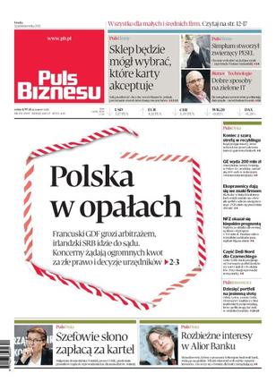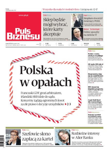 irlandzki SRB idzie do sądu – koncerny żądają ogromnych kwot za złe prawo i decyzje urzędników; rząd przyjął ustawę, która uchroni nas przed zalewem śmieci i gniewem Brukseli; ekolodzy w białych kołnierzykach wzięli ostatnio na celownik spółki z sektora energetycznego – PGE udało się przed nimi obronić; NFZ okazał się kiepskim prognostą; Getin Noble Bank przejmuje