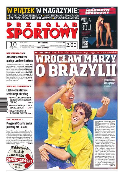 Antoni Piechniczek oficjalnie krytykuje postawę Leo Beenhakkera; wywiad z Jackiem Krzynówkiem, pomocnikiem reprezentacji Polski; Brazylia może zagrać z Polską na otwarcie stadionu we Wrocławiu w 2011 roku; Andrzej Niedzielan w wyniku kontuzji odniesionej podczas treningu jest niezdolny do gry; rozmowa z Tomaszem Tłuczyńskim, skrzydłowym reprezentacji i TSV Hannover-Burgdorf; ministerstwo obcięło fundusze na nagrody dla zawodników i trenerów o 1,7 miliona zł.