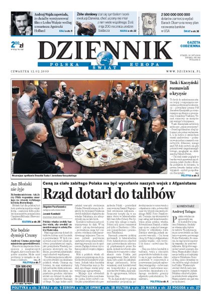 Ceną za ciało zabitego Piotra Stańczaka ma być wycofanie polskich wojsk z Afganistanu; niemiecka policja brutalnie potraktowała Jana Rokitę, bo przełożył płaszcz bez zgody stewardesy; premier jest rozgoryczony rewelacjami o przeszłości Andrzeja Czumy; Komisja Przyjazne Państwo chce znieść zakaz sprzedaży alkoholu w warsie; Andrzej Wajda przygotowuje się do nakręcenia filmu o życiu Lecha Wałęsy; w dobie kryzysu kandydaci do pracy godzą się na coraz niższe płace; co trzeci dojrzały Polak przyznaje się do zdrady małżeńskiej; Barack Obama szykuje plan wykupu przez rząd długów banków.