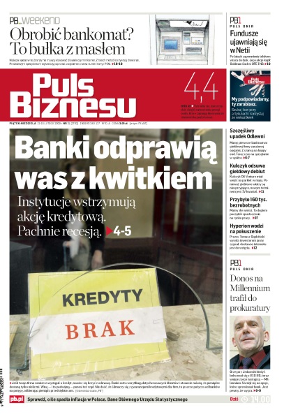Banki zapowiadają selektywne podejście do klientów – akcja kredytowa zamiera, sąd ogłosił upadłość układową Odlewni Polskich, skokowy przyrost liczby bezrobotnych źle wróży rynkowi pracy, w prokuraturze złożono doniesienie o podejrzeniu przestępstwa przez Bank Millennium, problemy branży bankowej na przykładzie rezultatów finansowych Kredyt Banku i Banku Handlowego, Komisja Nadzoru Finansowego zajęła się tajemniczą końcówką środowej sesji na GPW, światowe rynki są bliskie paniki.