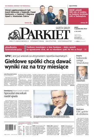 Gazeta Giełdy i Inwestorów Parkiet przyspiesza publikację e-wydania. Od poniedziałku, już od godz. 20.00, można kupić i przeczytać e-wydanie Parkietu, które w wersji papierowej ukaże się dopiero następnego dnia. Parkiet jest więc najświeższą gazetą finansową w Polsce.