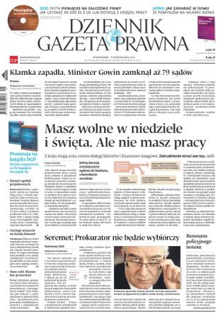 Dziennik Gazeta Prawna – codziennie obiektywne i rzetelne informacje z kraju i ze świata. Piszemy o tym, co dziś ważne i odpowiadamy na Wasze pytania – szczególnie te związane z obecnymi wyzwaniami tj. pandemia, praca zdalna. Na bieżąco wyjaśniamy zmieniające się przepisy. Wspieramy się wyjaśnieniami ministerstw i urzędów. Pomagamy unikać błędów i ostrzegamy, jakie są kary. Ponadto w każdy piątek specjalne magazynowe wydanie Dziennika Gazety Prawnej w całości z tekstami społeczno-ekonomicznymi.