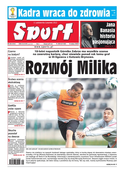 18-letni napastnik Górnika Zabrze ma wszelkie szanse na zawrotną karierę, choć niewiele ponad rok temu grał w III-ligowcu z Katowic-Brynowa; rosną szansę Grzegorza Krychowiaka na poprowadzenie gry w drugiej linii; pokłosiem afery z udziałem Johna Terry’ego będzie wprowadzenie przez FA kodeksu etycznego reprezentanta Anglii; czas pracuje na naszą korzyść - przekonuje Wiesław Popik, szkoleniowiec drużyny spod Klimczoka; na przełom lutego i marca 2013 roku przełożona została walka Przemysława Salety z Andrzejem Gołotą w wadze ciężkiej – obaj będą mieli wtedy po 45 lat.