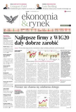 Służby specjalne zatrudniają na potęgę, choć nie wiedzą, jak będą działać po planowanej reformie; blisko połowa ekranów akustycznych powstała niepotrzebnie. a firmy je produkujące zarobiły na nich fortunę; wbrew obawom motor francusko-niemiecki działa bez zgrzytów; nagrodę Nobla z chemii przyznano za badania nad inteligentnymi receptorami na powierzchni komórek; zmarł Jerzy Jarocki, jeden z najwybitniejszych i najważniejszych polskich inscenizatorów – miał 83 lata; jutro towarzyski mecz z reprezentacją kraju, który dopiero od 20 lat jest na piłkarskiej mapie; pojawił się nagle i ma zbawić kadrę – Grzegorz Krychowiak to polski pomysł na zatrzymanie Anglii; w tym roku stopę zwrotu z inwestycji w akcje wydatnie podniosły sowite dywidendy.