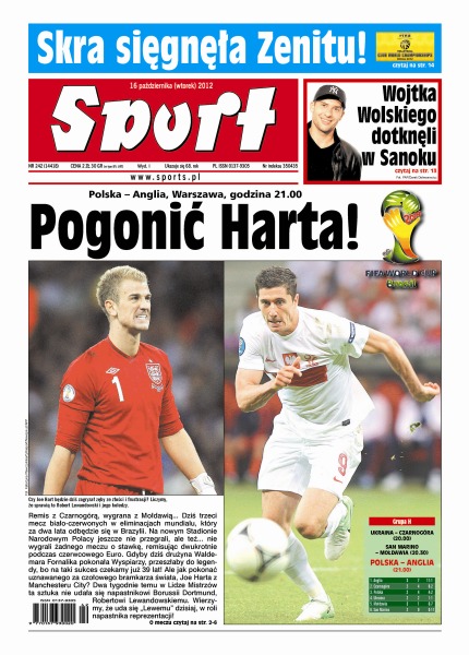 Czy Joe Hart będzie dziś zagryzał zęby ze złości i frustracji – liczymy, że sprawią to Robert Lewandowski i jego koledzy; szok wokół dopingowej sprawy Lance’a Armstronga oraz premiera nowego filmu z udziałem Jamesa Bonda; w Madrycie dojdzie do rewanżu za ćwierćfinał Euro 2012 – Karim Benzema spróbuje przerwać popis klubowego kolegi, Ikera Casillasa; polski jedynak w NHL przyleciał do Polski – najprawdopodobniej w piątek zadebiutuje w meczu Ciarko PBS Banku z Cracovią; siatkarze Skry Bełchatów, choć mieli chwile słabości, pokonali Zenit Kazań, z którym przegrali w marcowym finale Ligi Mistrzów; młodsza Radwańska wyeliminowała Francescę Schiavone i o ćwierćfinał Pucharu Kremla zagra z Karoliną Woźniacką; szkoleniowiec nowych mistrzów Polski, Azotów Tauronu Tarnów, zdobył w tej roli czwarty tytuł.