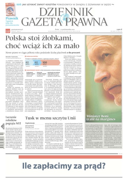 Polska stoi żłobkami, choć wciąż ich za mało; zła sytuacja finansowa NFZ może zmusić rząd do przyspieszenia prac nad reformą ubezpieczenia rolników; kraje strefy euro chcą wykorzystać mechanizm wzmocnionej współpracy zawarty w traktacie lizbońskim, aby wprowadzić odrębny budżet dla unii walutowej; dlaczego minister Boni trafił na margines; UOKiK, PGNiG i konsumenci mogą teraz uderzyć w Gazprom; nasz kraj nie absorbuje rosyjskiego MSZ, które nie ma zamiaru wydawać pieniędzy na opracowania na temat Polski; Renault odchodzi od rabatów na samochody – nowe Clio zmieni diametralnie politykę handlową francuskiego koncernu; dlaczego do programu dopłat do energooszczędnych budynków chcą na razie przystąpić tylko dwa banki komercyjne.