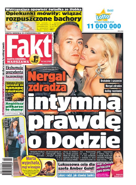 Nergal ujawnia prawdę o swoim związku z Dodą; będzie ekshumacja prezydenta Ryszarda Kaczorowskiego; angielscy piłkarze po meczu z Polakami nie chcieli wymienić się z nimi koszulkami; czy Marta Kaczyńska się rozwiedzie.
