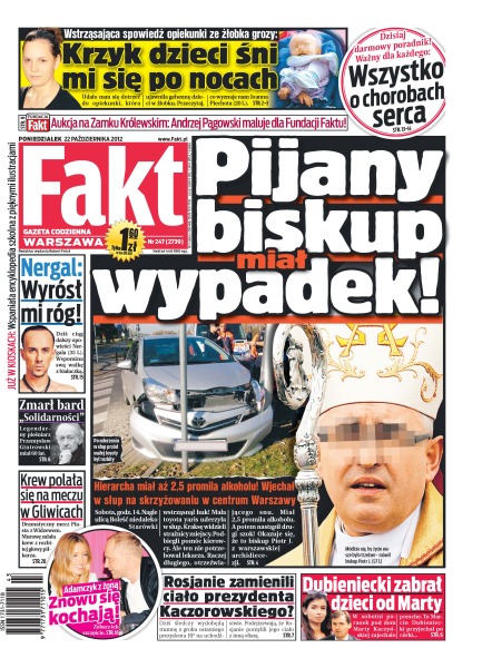 Wstrząsająca spowiedź opiekunki ze żłobka grozy – „krzyk dzieci śni mi się po nocach”; pijany biskup miał wypadek – hierarcha miał aż 2,5 promila alkoholu, wjechał w słup na skrzyżowaniu w centrum Warszawy; Adamczyk z żoną – znowu się kochają; czy Rosjanie zamienili ciało prezydenta Kaczorowskiego; Dubieniecki zabrał dzieci od Marty Kaczyńskiej; krew polała się na meczu w Gliwicach.