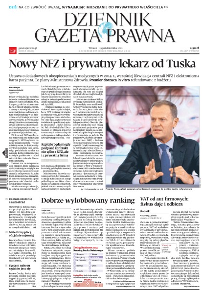 Ustawa o dodatkowych ubezpieczeniach medycznych w 2014 r., wcześniej likwidacja centrali NFZ i elektroniczna karta pacjenta – to plany Ministerstwa Zdrowia; na co zwrócić uwagę wynajmując mieszkanie od prywatnego właściciela; VAT od aut firmowych: fiskus daje i odbiera; małe firmy płacą oficjalnie najmniej; dlaczego system naboru sędziów jest zły; branża kosmetyczna wciąż charakteryzuje się dobrą rentownością i daje zarobić.