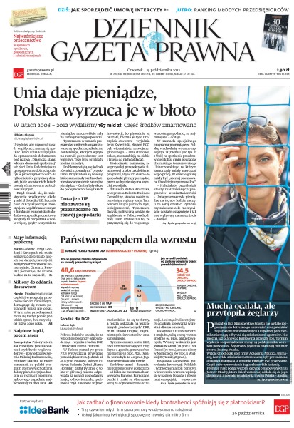 Unia daje pieniądze, Polska wyrzuca je w błoto – w latach 2008 – 2012 wydaliśmy 167 mld zł, część środków zmarnowano; jak sporządzić umowę intercyzy; Mucha ocalała, ale przytopiła żeglarzy; miliony do oddania dostawcom; Główny Urząd Geodezji i Kartografii nie może odmawiać dostępu do swoich baz danych, nawet jeśli będą wykorzystywane komercyjnie; najpierw łupki, potem atom.