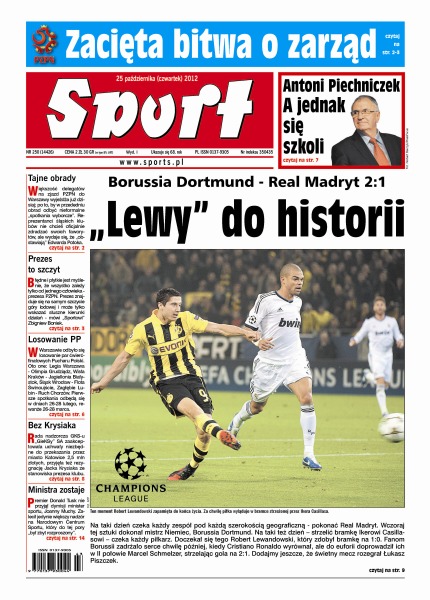 Borussia – Real 2:1 – Polak pokonał mistrza świata Ikera Casillasa. „królewscy” po raz drugi w tym roku przegrali w Niemczech; w Warszawie odbyło się losowanie par ćwierćfinałowych Pucharu Polski; rada nadzorcza GKS-u „GieKSy” SA zaakceptowała uchwały niezbędne do przekazania przez miasto Katowice 2,5 mln złotych; premier Donald Tusk nie przyjął dymisji minister sportu, Joanny Muchy.