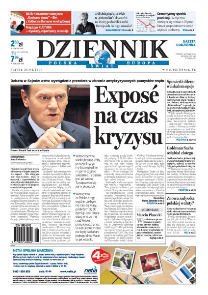 Ostre wystąpienie Donalda Tuska w obronie antykryzysowych pomysłów rządu; jak doszło do tego, że tysiące przedsiębiorców dało się nabrać bankom na niebezpieczne opcje walutowe; zator w tętnicy płucnej - to najprawdopodobniej główna przyczyna śmierci Kamili Skolimowskiej; Vaclav Claus poddał miażdżącej krytyce dotychczasowy kierunek rozwoju Unii Europejskiej; ważą się losy zawieszonych w październiku unijnych sankcji wobec Białorusi.