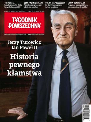 Fragmentem listu papieża Jana Pawła II do Jerzego Turowicza na 50-lecie „TP” od lat bije się w pismo i w jego redaktora – odsłaniamy kulisy manipulacji tym dokumentem; losy Gronkiewicz-Waltz to symbol sytuacji PO; czym pachnie kolęda: początkujący proboszcz odwiedza parafian; ile dla Polaków znaczą święta narodowe; szara obywatelka: porzucona przez polityków, nie ma zamiaru się poddać; do kogo należą nasze miasta; miecz Bannona nad głową Trumpa: rosyjskie śledztwo w Waszyngtonie nabiera tempa; czy drzewa będą świecić.