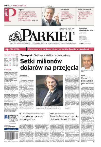 Transport – giełdowe spółki idą na duże zakupy, setki milionów dolarów na przejęcia; dlaczego utworzenie unii bankowej nie uczyni banków bardziej wypłacalnymi; SII o błędach w prospektach emisyjnych – inwestorze, poznaj swoje prawa; maklerzy i analitycy typują firmy – kandydaci do strojenia okien na koniec roku; analiza techniczna czy fundamentalna – opinie analityków i ekonomistów.