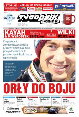 Kto poskromi zmodernizowaną Wielką Krokiew – kibice mają tylko jedną odpowiedź na to pytanie – Kamil Stoch i nasza reprezentacja; przy okazji sprzedaży biletów na Puchar Świata TZN uruchomiło „biuro podróży”; wypadki – dwa potrącenia pieszych i dwie ofiary śmiertelne; sześć budynków spłonęło w wielkim pożarze – straty sięgają miliona złotych; dlaczego mieszkańcy Maruszyna chcą kanalizacji, ale rur na swoich działkach już niekoniecznie; od tygodnia mieszkańcy Szczawnicy żyją „aferą taśmową”; ojciec zabił im matkę, zrujnował dzieciństwo – teraz córki potrzebują pieniędzy na własny dom.
