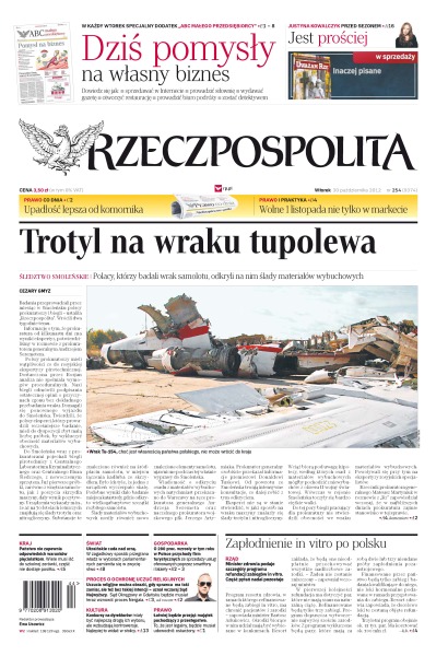 Trotyl na wraku tupolewa – Polacy, którzy badali wrak samolotu, odkryli na nim ślady materiałów wybuchowych; ukraińskie cuda nad urną – w zagadkowy sposób przegrana władz w wyborach parlamentarnych zamieniła się w zwycięstwo; o 280 proc. wzrosły w tym roku w Polsce przychody firm turystycznych ze sprzedaży usług oferowanych poprzez smartfony i tablety; Sąd Okręgowy w Gdańsku będzie musiał wznowić proces Nergala; minister zdrowia podaje szczegóły programu refundacji zabiegów in vitro.