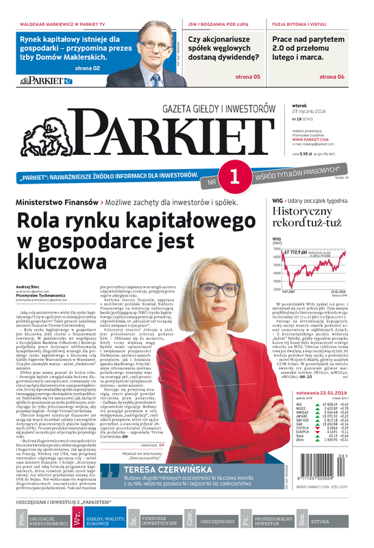 Największy w Polsce newsroom gospodarczy zbiera, analizuje i zgłębia dla Państwa najważniejsze informacje ze świata finansów. Codzienne wydanie „Parkietu”, sześć dni w tygodniu, to kilkadziesiąt artykułów o emitentach, instytucjach finansowych, gospodarce. To również opinie, felietony i wywiady z najważniejszymi ludźmi krajowej i globalnej finansjery.