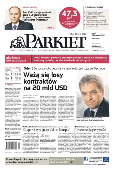Największy w Polsce newsroom gospodarczy zbiera, analizuje i zgłębia dla Państwa najważniejsze informacje ze świata finansów. Codzienne wydanie „Parkietu”, sześć dni w tygodniu, to kilkadziesiąt artykułów o emitentach, instytucjach finansowych, gospodarce. To również opinie, felietony i wywiady z najważniejszymi ludźmi krajowej i globalnej finansjery.