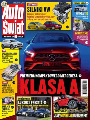 AKTUALNOŚCI: Mercedes klasy A; Audi Q3; Seaty 4x4; Hyundai i30 Fastback; Mitsubishi Eclipse Cross; Citroen C3 Aircross; TESTY: Audi A8 kontra Mercedes klasy S; Opel Grandland X 1.2 turbo; VW up! 1.0 TSI; Subaru XV 2.0 AWD; PORADY: napęd 4x4 – budowa, działanie, eksploatacja; niebezpieczne poduszki powietrzne; czym grozi jazda z popsutym zawieszeniem; odpowiedzi na Wasze pytania; Z DRUGIEJ RĘKI: silniki Volkswagena – trwałe jednostki napędowe i modele, w których były montowane; Alfa Romeo Giulietta; FASCYNACJE: Jeep Wrangler Rubicon – nowa odsłona na bezdrożach Nowej Zelandii; oldtimer – Renault 16.