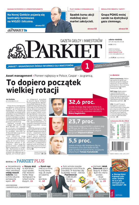 Największy w Polsce newsroom gospodarczy zbiera, analizuje i zgłębia dla Państwa najważniejsze informacje ze świata finansów. Codzienne wydanie „Parkietu”, sześć dni w tygodniu, to kilkadziesiąt artykułów o emitentach, instytucjach finansowych, gospodarce. To również opinie, felietony i wywiady z najważniejszymi ludźmi krajowej i globalnej finansjery.