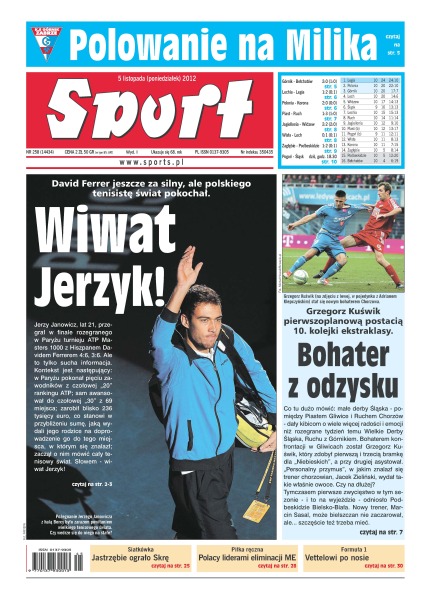 Pożegnanie Jerzego Janowicza z halą Bercy było zarazem powitaniem wielkiego tenisowego świata – czy wedrze się do niego na stałe; Ruch po raz pierwszy w tym sezonie strzelił trzy bramki i zasłużenie zainkasował komplet punktów, choć zwycięstwo okupił stratą dwóch czołowych pomocników; po 224 dniach bielszczanie wygrali mecz w ekstraklasie; Borussia Dortmund tylko zremisowała ze Stuttgartem, a Robert Lewandowski w końcówce trafił w poprzeczkę; Lionel Messi nie uczcił golem narodzin syna; bielskie siatkarki w imponującym stylu pokonały wicemistrzynie Polski z Muszyny i wróciły na fotel lidera; biało-czerwoni nie mieli w Zaporożu problemów z pokonaniem Ukrainy i w nowy rok wejdą jako liderzy grupy 5 eliminacji mistrzostw Europy; na obiekcie imienia Adama Małysza po raz pierwszy odbędzie się rywalizacja o Puchar Świata.