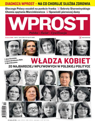 Polskie kobiety dzierżą władzę w polityce zwykle tylko przez chwilę - ta chwila należy do Anny Streżyńskiej; na co choruje polska służba zdrowia; pierwsza dama RP opowiada o spotkaniach z innymi żonami prezydentów; ostatnia sesja zdjęciowa Franciszka Starowieyskiego; Kazimierz Marcinkiewicz ofiarą chemii miłości; pod koniec 2008 r. polskie rodziny były zadłużone z tytułu kredytów mieszkaniowych na kwotę 192 mld zł, z czego połowę stanowiły zobowiązania we frankach szwajcarskich; rozmowa z Jarosławem Gowinem o ekshibicjonizmie i efektywności w polityce.