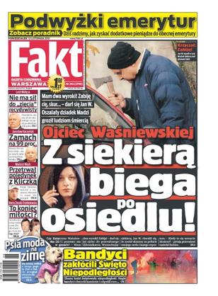 Dlaczego ojciec Katarzyny Waśniewskiej z siekierą biega po osiedlu; tłumy Polaków świętowały rocznicę odzyska wolności; prezes PiS nie wycofuje się z ostrych słów, jakie padły po aferze z „trotylem”; jak się zarabia na ruskim paliwie; Marta Żmuda Trzebiatowska nie ma czasu dla swojego partnera; przewaga Władimira Kliczki była wyraźna, ale znokautować Mariusza Wacha nie był w stanie; Biała Gwiazda straciła punkty w ostatniej akcji meczu.