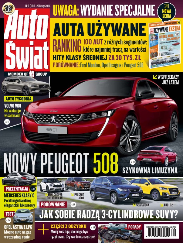 AKTUALNOŚCI: Volvo V60; Cupra Ateca; Mercedes klasy C; Peugeot 508; TESTY: Audi Q2, Mini Countryman, Peugeot 3008 i Seat Ateca; Citroen C3; Opel Astra; Jaguar XF Sportbrake; Volkswagen T-Roc; PORADY: systemy oczyszczania spalin; używane części zamienne; odpowiedzi na Wasze pytania; FASCYNACJE: Porsche 4x4 w Laponii; oldtimer – Fiat 131 Mirafiori (1974-85); MARKET: rynek samochodowy oraz oferty dilerów; DODATEK SPECJALNY – SAMOCHODY UŻYWANE.