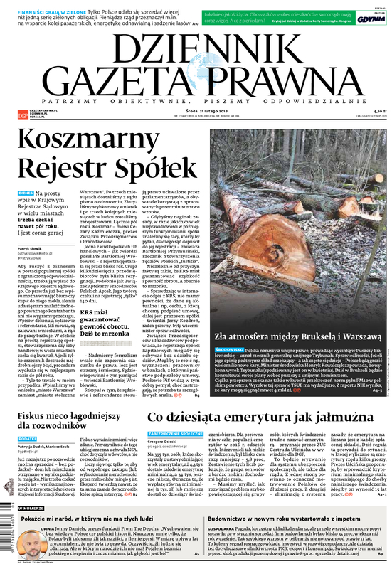 Gazetę wzbogacają praktyczne dodatki dla specjalistów, niedostępne w kioskach: Księgowość i Podatki, Rachunkowość i Audyt, Firma i Prawo, Samorząd i Administracja, Prawnik, Kadry i Płace, Ubezpieczenia i Świadczenia. NOWOŚĆ 2021 r. dodatki Biuro Rachunkowe i Księgowość Budżetowa (dostępne raz w miesiącu). Dodatkowo publikujemy wyjątkowo cenione przez Czytelników specjalne dodatki dotyczące najważniejszych zmian, nowych rozwiązań, na gorąco odpowiadamy na pytania. Piszemy o pracy zdalnej, o tarczach antykryzysowych, o nowych przepisach do walki z epidemią, o sposobach walki z zatorami płatniczymi i nowych obowiązkach pracodawców. Zapewniamy bezpieczeństwo w stosowaniu zmieniającego się prawa.